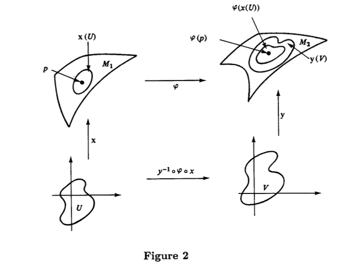 2.5 DEFINITION. Let and be differentiable manifolds. A mapping is differentiable at if given a parametrization at there exists a parametrization at such that and the mapping